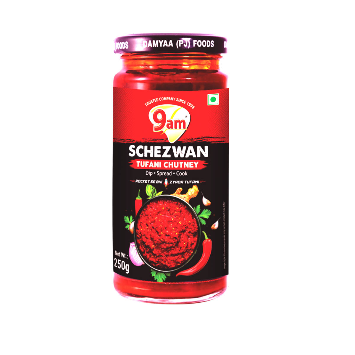 9 AM Schezwan Chutney is the best accompaniment for your homemade momos. This 9AM Schezwan Chutney adds a punch of deliciousness as well as a sour, spicy flavour to your dishes. Use it on both vegetarian and non-vegetarian foods, such as chicken and paneer, to taste the difference. Because it is made using hand-picked chillies and fresh herbs, you will get the quality and freshness you deserve. The 9 AM Schezwan Chutney is made without the use of any harmful chemicals. Try other 9AM products from sauces to pickles, noodles and more on Big Basket!