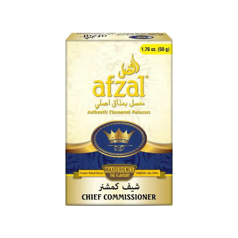 Order Afzal Chief Commissioner Hookah Molasses online for a premium shisha experience. This bold, authentic molasses blend offers smooth, rich flavors, crafted with high-quality ingredients for a luxurious smoke session. Perfect for enthusiasts who enjoy bold, full-bodied, and authentic shisha flavors.