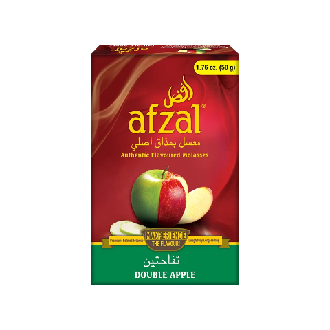 Afzal Double Apple Tobacco Hookah Molasses for a refreshing blend of sweet red and tangy green apples. This classic, vintage flavor is a signature favorite, perfect for enhancing your Hookah sessions. Buy now and enjoy a smooth, satisfying smoke that appeals to all types of smokers.