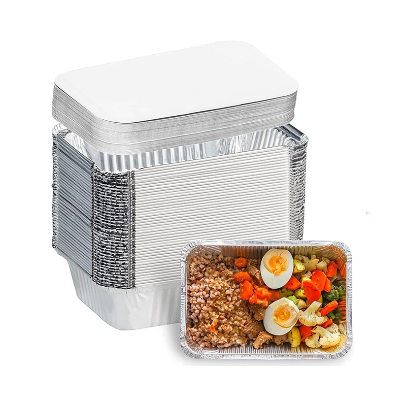 660ml Aluminum Foil Box Pack Container with Lid – Silver | Pack of 90 Pcs | 660 ml Disposable Food Packing Boxes for Takeaway, Delivery & Storage
