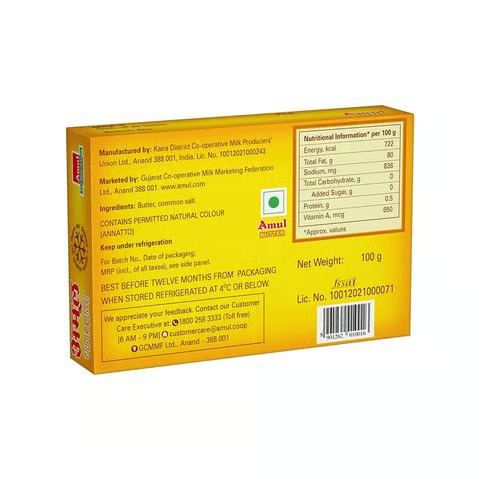 Made from the freshest of cream, the Amul butter has lovely taste which is delicate and slightly salty. This finely processed butter is natural, pure and tastes best overwith toasts and sandwiches. Has a natural and pure formulation that gives it a great taste. Made from fresh cream that has a wonderful flavour. Spread it over toast or cook your curries in it for a heavenly taste.