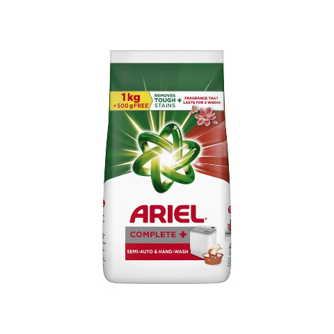 New Ariel Complete Detergent Washing Powder gives you tough stain removal in just 1 wash. Designed to work in semi-automatic washing machine, Ariel gives brilliant results in both semi-automatic washing machine as well as in hand wash. Ariel dissolves in water completely to remove tough stains like juice, chocolate, tomato and butter/ghee. Perfect for all your clothes, Ariel washing powder helps to give you impeccable cleaning and keeps your clothes smelling fresh. Step out into the world with confidence knowing that you have Ariel as your partner in laundry.