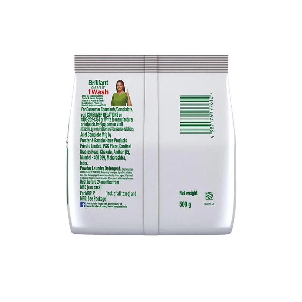 New Ariel Complete Detergent Washing Powder gives you tough stain removal in just 1 wash. Designed to work in semi-automatic washing machine, Ariel gives brilliant results in both semi-automatic washing machine as well as in hand wash. Ariel dissolves in water completely to remove tough stains like juice, chocolate, tomato and butter/ghee. Perfect for all your clothes, Ariel washing powder helps to give you impeccable cleaning and keeps your clothes smelling fresh. Step out into the world with confidence knowing that you have Ariel as your partner in laundry.