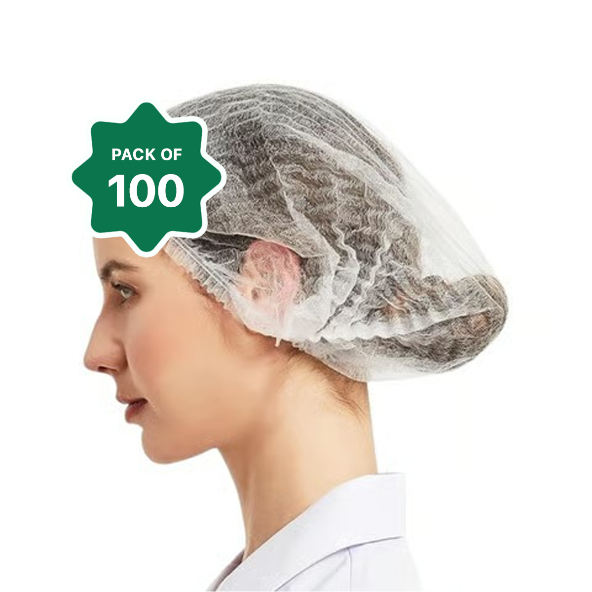 A bouffant cap is a loose, puffy cap that's worn to protect hair from contaminants and fluids. They are typically made from non-woven polypropylene material, and are secured around the head with an elastic.