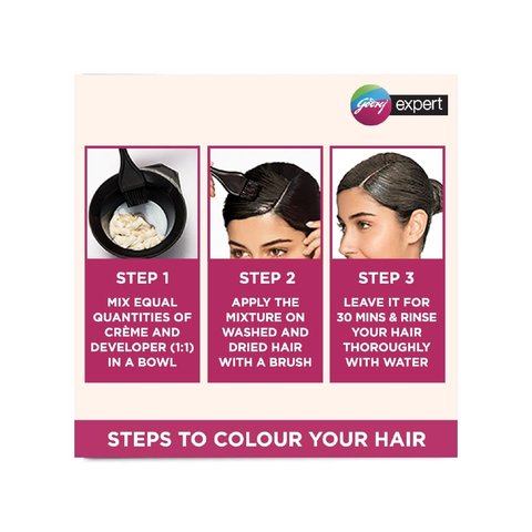 Godrej Expert Rich Crème hair colour for men and women is available in five beautiful shades – Natural Black, Black Brown, Burgundy, Dark Brown and Natural Brown. The colour is enriched with 10x Aloe Vera that makes the hair soft and shiny. The crème contains no ammonia and hence protects your hair from any damage. The colour is suitable for both men and women and all Indian hair types.