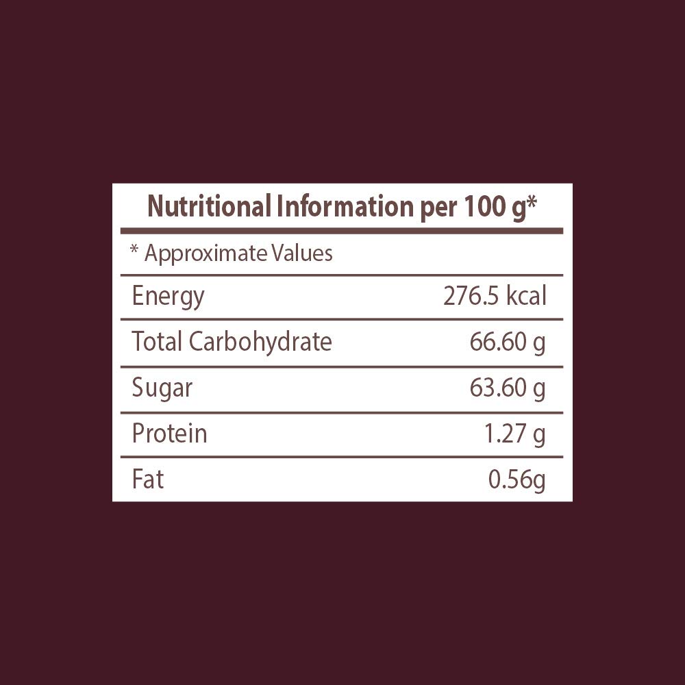 Sugar, Water, Invert Sugar, Liquid Glucose, Cocoa Powder, Malt Extract, Salt, Stabilizer (415), Potassium Sorbate and Class II Preservative (202)