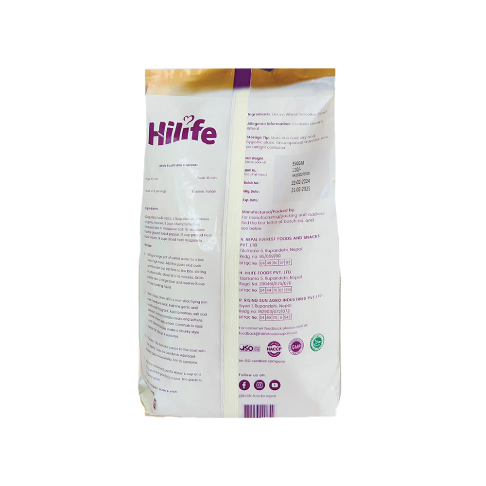 Elevate your pasta dishes with Hilife Fusilli Pasta, crafted to deliver a delightful twist on your favorite recipes. Made from premium durum wheat, this pasta features the classic corkscrew shape, perfect for holding onto rich sauces and dressings. Whether you're preparing a hearty Italian feast, a fresh pasta salad, or a quick weeknight dinner, Hilife Fusilli Pasta brings exceptional texture and taste to every bite. Enjoy a satisfying and versatile ingredient that's as easy to cook as it is to savor.