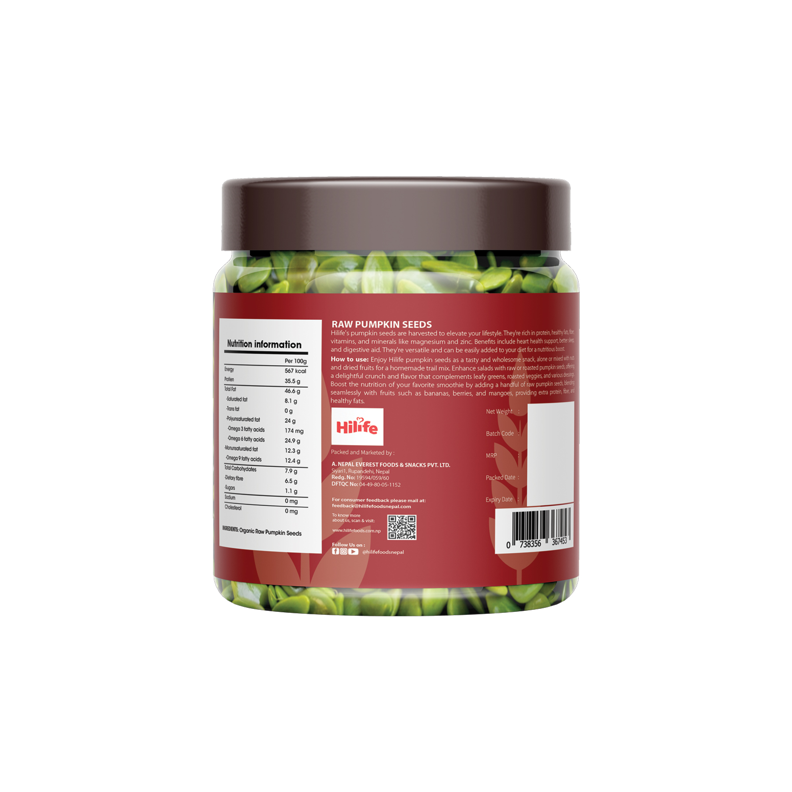 Discover the irresistible crunch and nutty flavor of Hilife Pumpkin Seeds, the perfect snack for health-conscious individuals. Our premium seeds are carefully roasted to enhance their natural taste while preserving their rich nutritional profile. Packed with essential nutrients, Hilife Pumpkin Seeds are a versatile addition to salads, smoothies, or enjoyed straight from the bag. Embrace a wholesome snack that's both satisfying and nourishing!