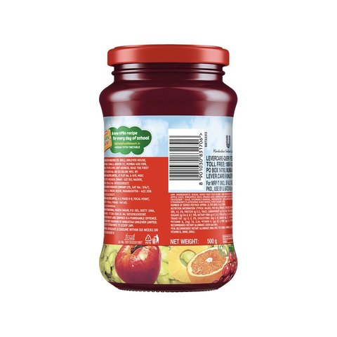 Kissan Mixed Fruit Jam is made with 100% real fruit ingredients. Is easy to use and can be enjoyed on the go every morning. Enjoy it best with Bread, Roti, Paratha or Dosa for a wholesome breakfast. Turns boring breakfast into an empty plate. Spreads easily with a spoon or a knife.