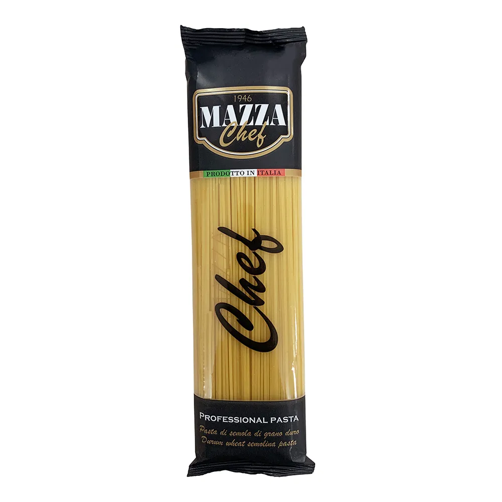 Mazza Chef Pasta is entirely produced in Italy, the pasta-making country par excellence. This professional pasta range is created using the best varieties of durum wheat semolina. Pasta Mazza Chef gives kitchen professionals the chance to always find the right cooking time, essential to create dishes of excellent quality. Indeed, one of the main strenghts of this top prime pasta selection is the elasticity of the cooking point. Actually, to figure it out is a big challenge: one minute more and the pasta over- cooks, one minute less and it remains raw. Pasta Mazza Chef allows more flexible cooking times, ensuring the best possible result.