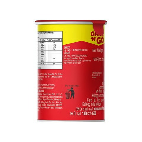 Per 100g Serving Includes: Energy - 523 kcal Total Fat - 27.9 g Protein - 5.0 g Soduim - 469 mg