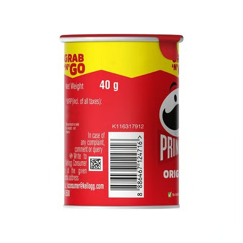 Unlike other Potato chips, Pringles crisps are made from a mix of Potato, Rice flour, Corn Flour, and Wheat starch. It is light and crispy and comes in a can! Experience the Pringles magic today!