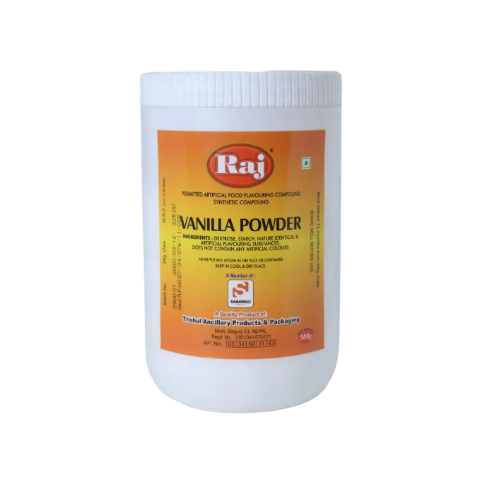 Raj Vanilla Powder Jar is a high-quality, finely ground powder that provides a rich and aromatic vanilla flavor to a variety of baked goods and desserts. Ideal for cakes, cookies, pastries, and beverages, it offers the authentic taste of vanilla without the need for liquid extracts. Convenient and easy to use, Raj Vanilla Powder is perfect for both professional kitchens and home bakers looking to enhance their recipes with a sweet, aromatic vanilla flavor.