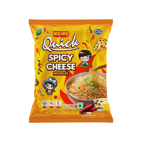 Wai Wai Quick Spicy Cheese Noodles deliver a bold and flavourful fusion of creamy cheese and fiery spice in a 100% vegetarian recipe. The rich cheese seasoning combined with spicy oil creates a perfectly balanced kick, offering a delicious and satisfying experience for cheese lovers and spice seekers alike.